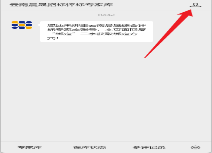 关注后若系统提示 “未绑定账号”,请在服务号聊天界面回复 “绑定” 二字,根据指引完成在库账号绑定(已绑定专家可跳过此步)。